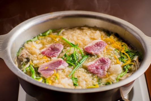 河内鴨料理とお蕎麦のお店がつくる節分の日のお食事ですので、河内鴨がゴロゴロ入ったお蕎麦もご用意しております。恵方巻には河内鴨のリエットを加え、良い塩梅となっております。